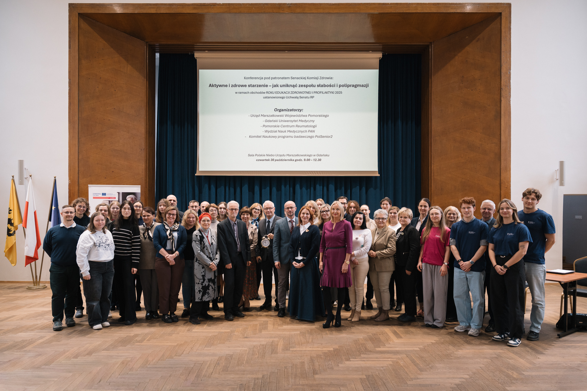 W dniu 30 października 2025 r. odbyła się Konferencja Regionalna pod patronatem Senackiej Komisji Zdrowia „Aktywne i zdrowe starzenie się – jak uniknąć zespołu słabości i polipragmazji”. Wydarzenie zorganizowane zostało w ramach obchodów Roku Edukacji Zdrowotnej i Profilaktyki 2025 przez Urząd Marszałkowski Województwa Pomorskiego i Gdański Uniwersytet Medyczny, we współpracy z ekspertami Pomorskiego Centrum Reumatologii, Wydziału Nauk Medycznych PAN oraz Komitetu Naukowego programu PolSenior2.